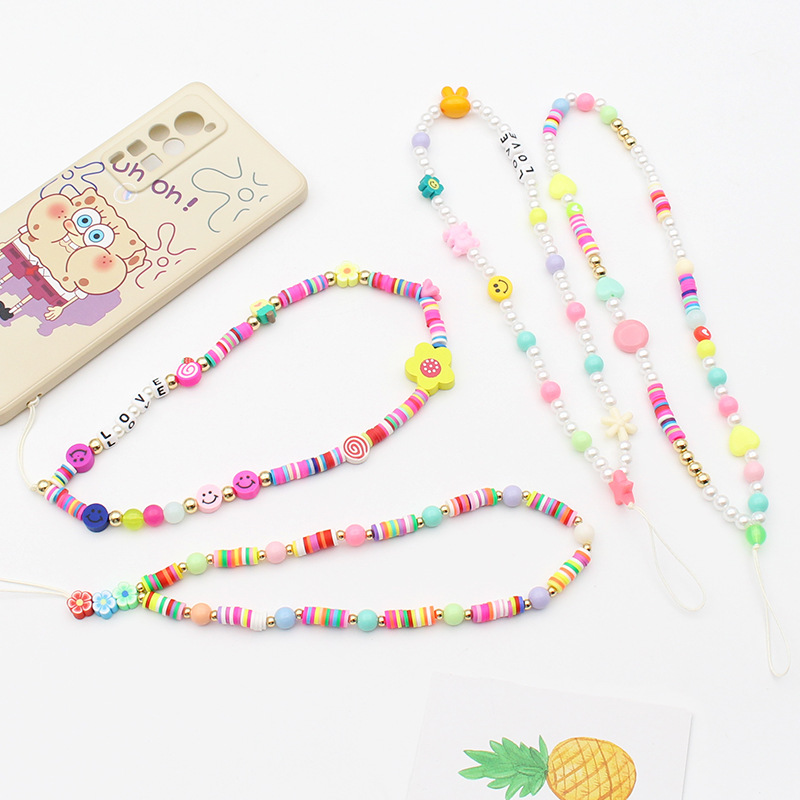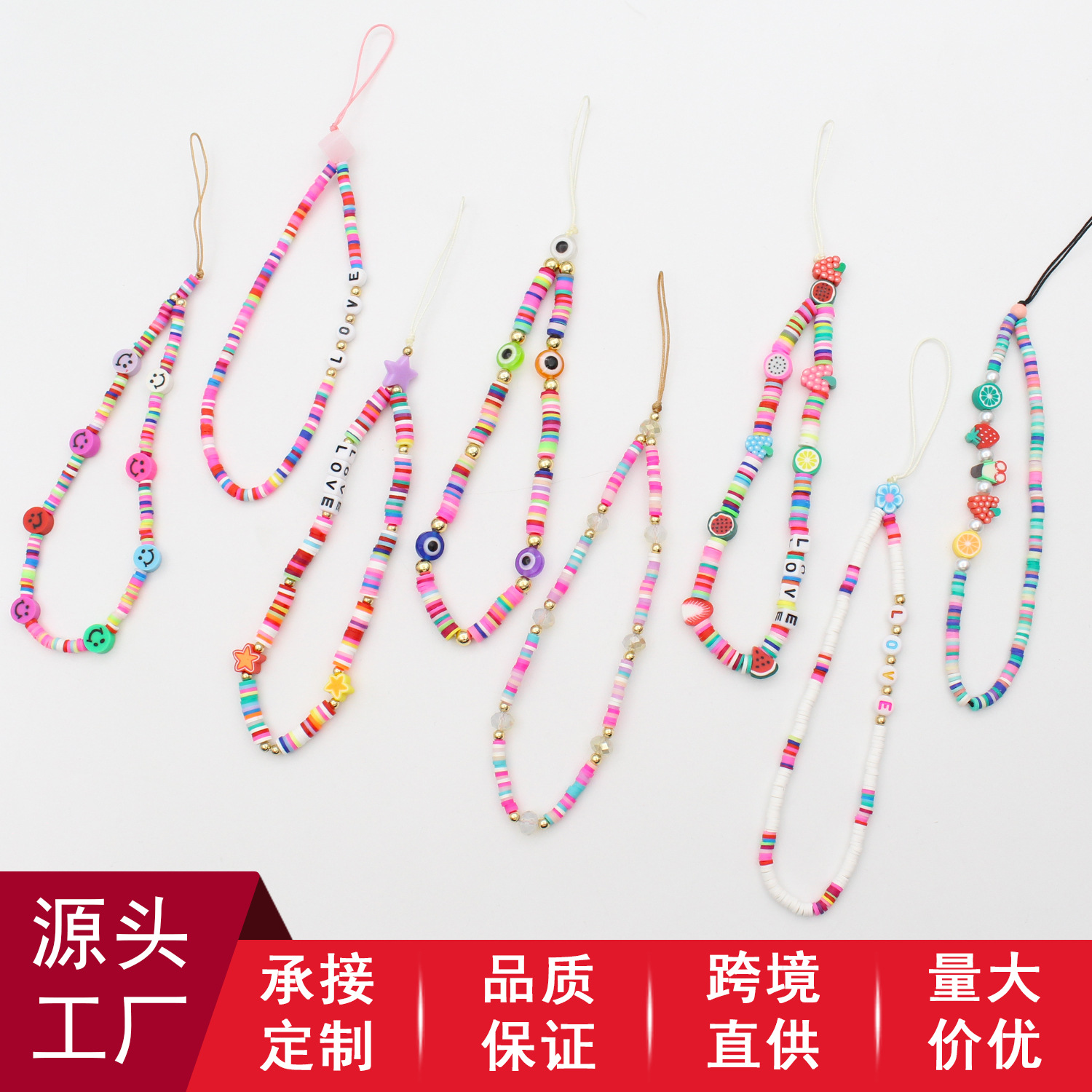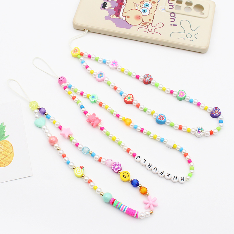国境を越えた新型混彩軟陶かわいい少女真珠ビーズチェーンボヘミアン風防止ストラップ