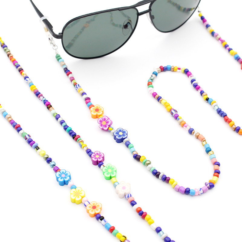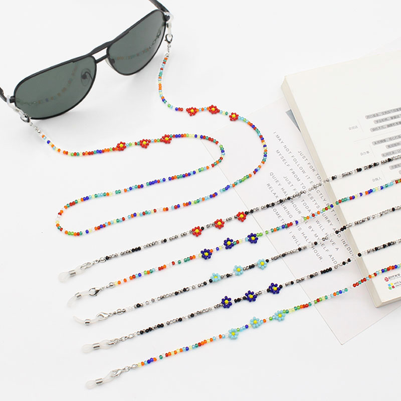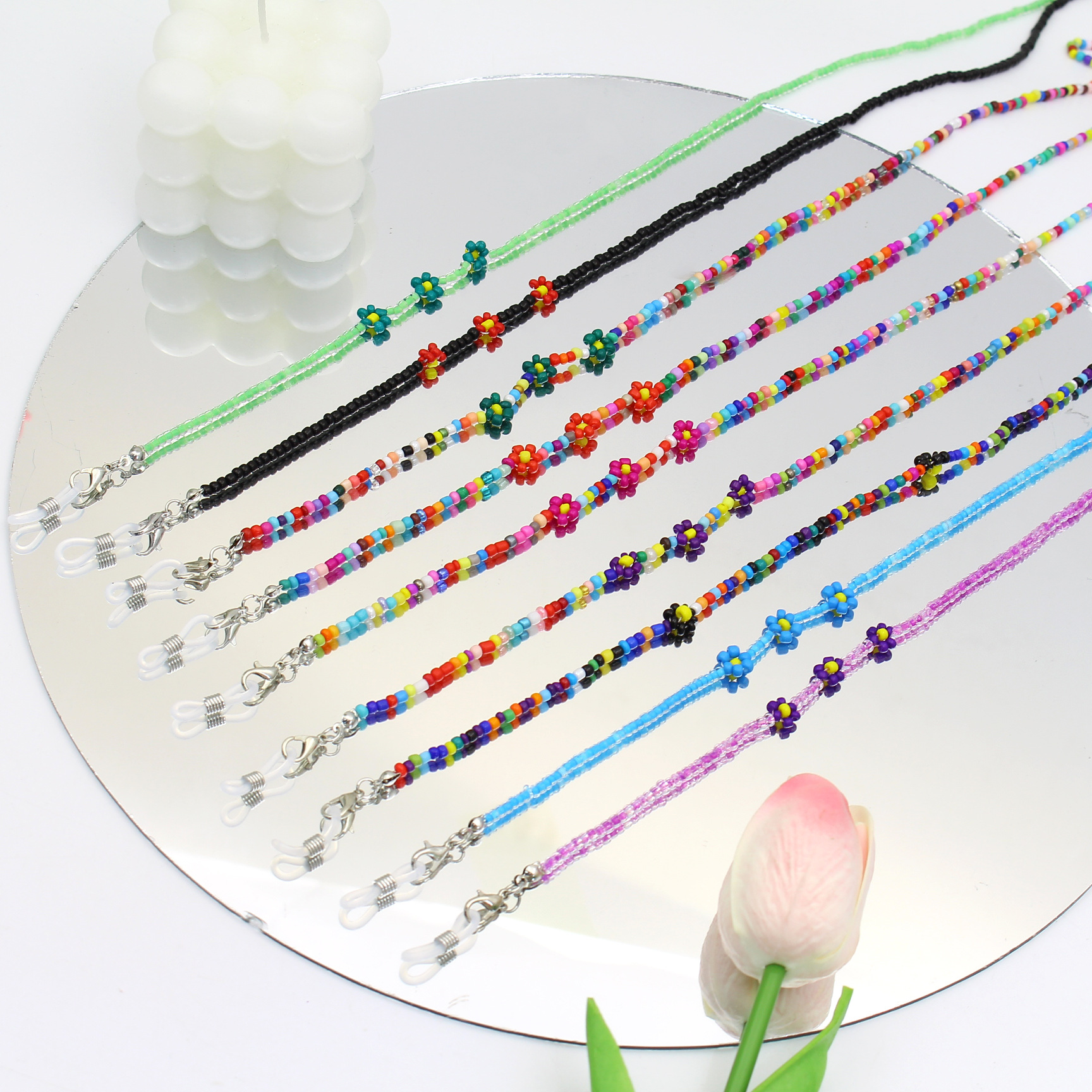 新しいレトロな7色のガラスビーズのメガネのひもはマスクのチェーンの小さい花の米のビーズのメガネのチェーンを落として代行します。