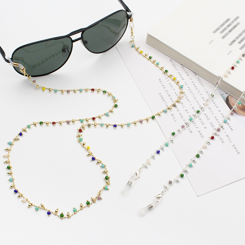 メガネチェーン高级感欧米カラーチェーン笑颜メガネロープ落し防止ストラップinsビーズマスクストラップ女