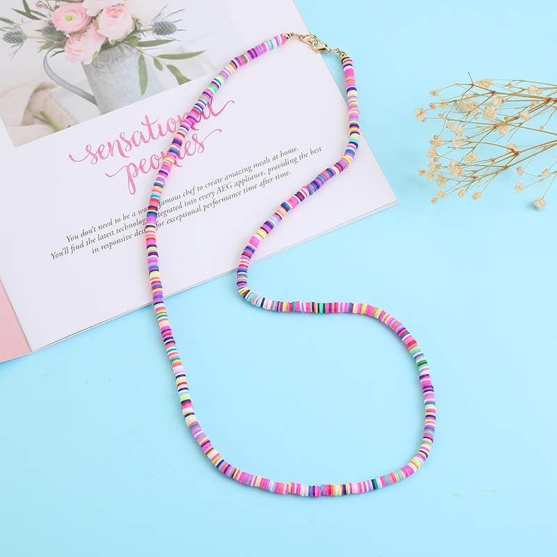 2023異域民族風カラーネックレス卸売り女性ファッション個性円形軟陶シンプルネックレスクロスボーダーアクセサリー