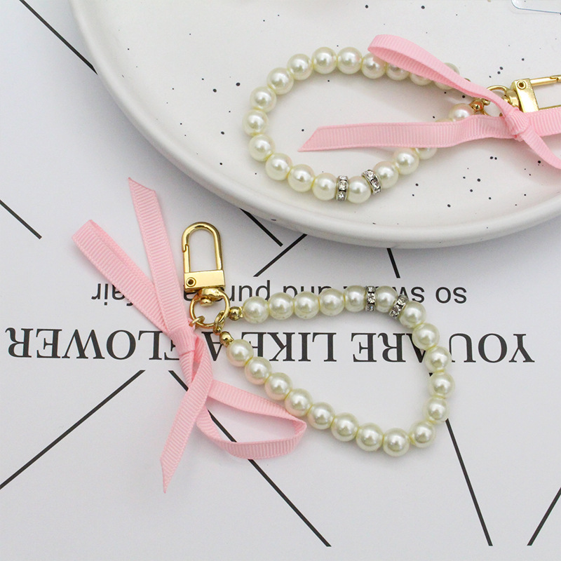 ネットの赤いタイプの気質のカラーは携帯電話のチェーンの真珠のブレスレットのキーホルダーの携帯電話の女性の仙気の蝶結びのひもを持ちます。