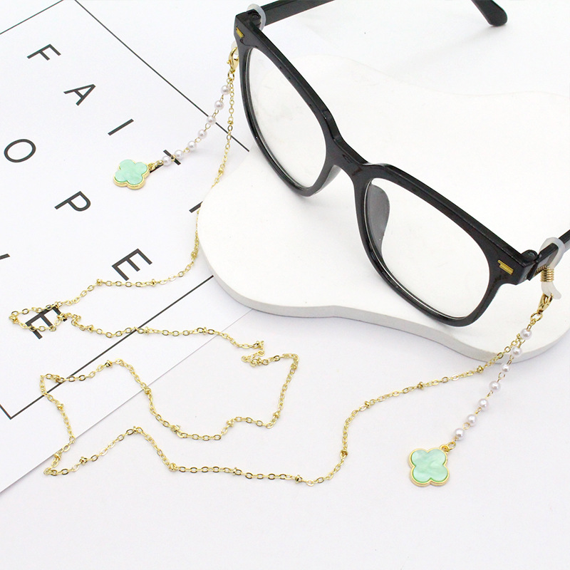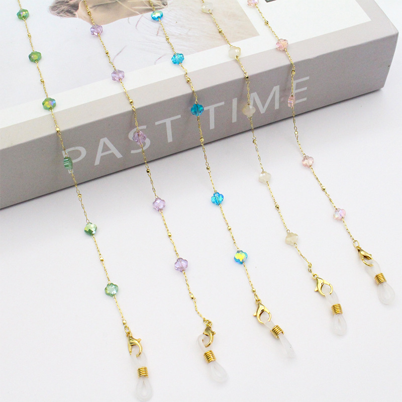女の子の幸運の四つ葉のクローバーサングラスチェーン、ファッショナブルで新鮮な滑り止めマスクチェーンジュエリーメガネ吊りチェーン装飾ストラップ