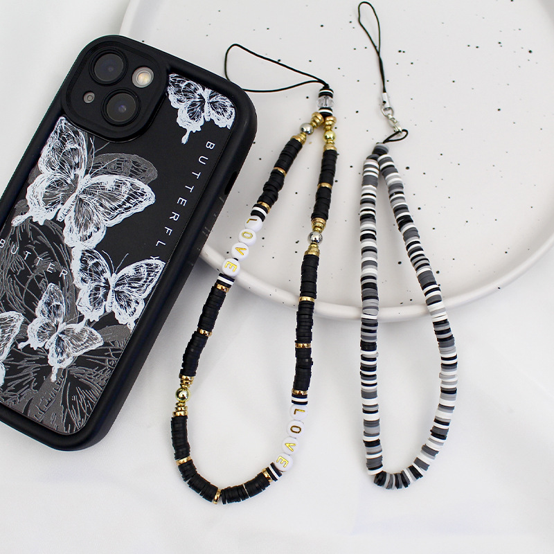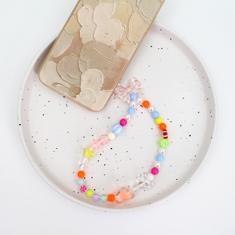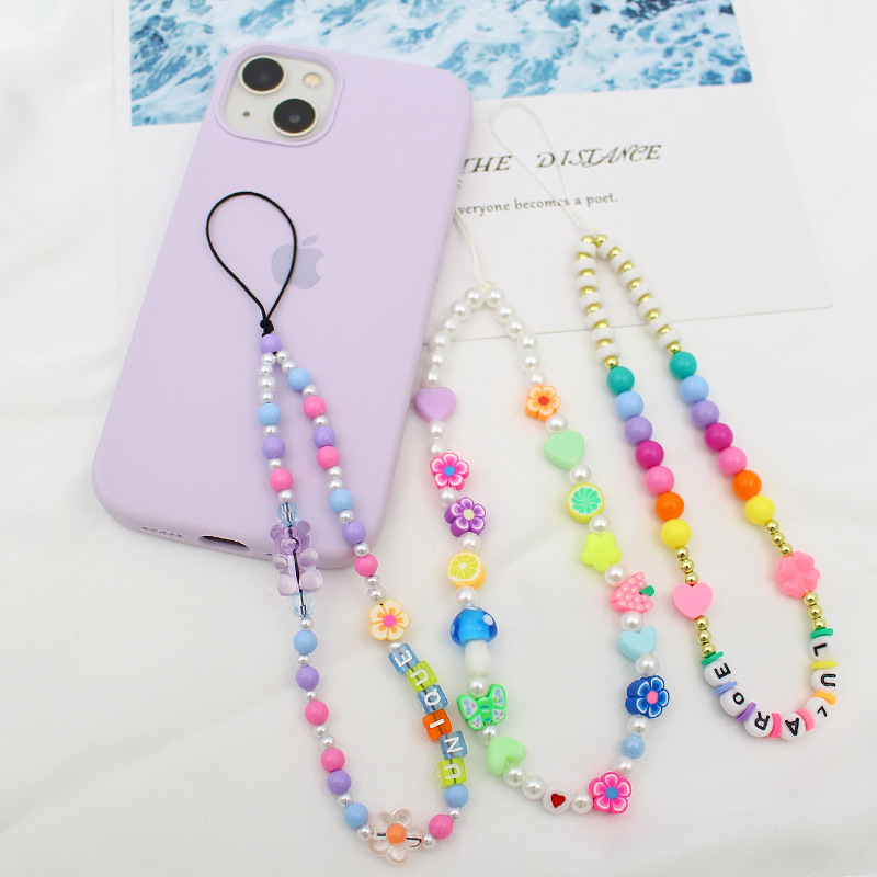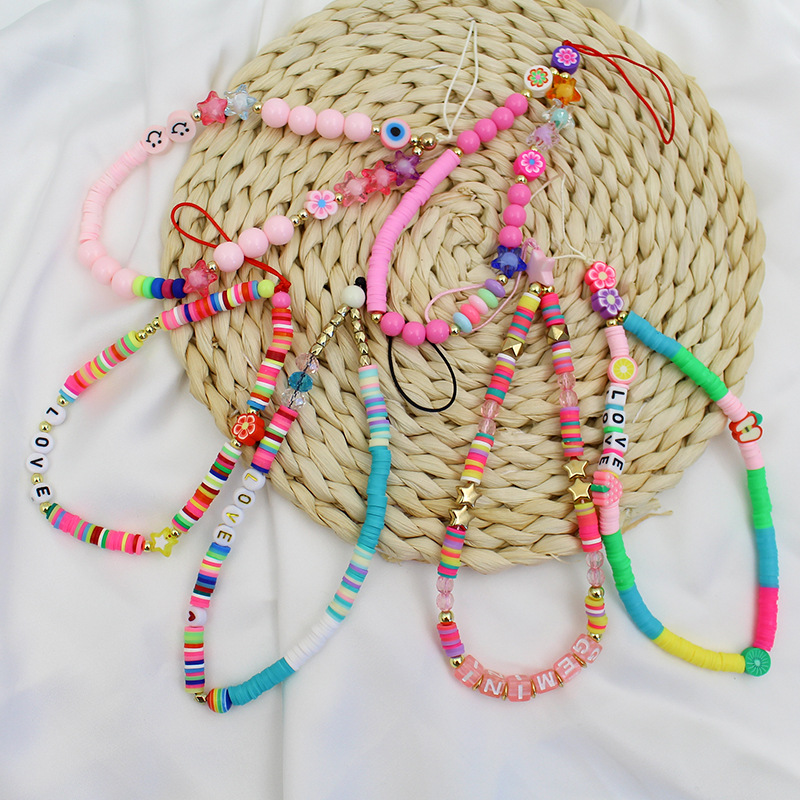 新型アクリル軟膏携帯電話のストラップとビーズをつなぎ合わせたカラー軟陶ins風韓国版キャンディー色の短いモデル