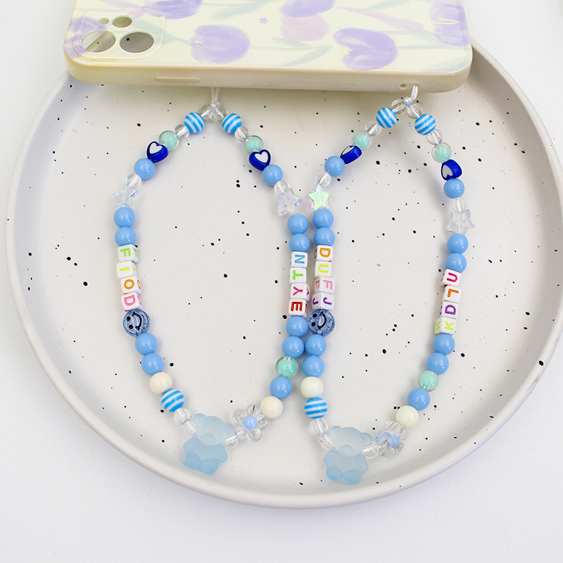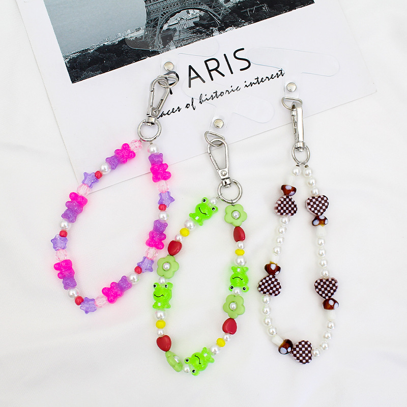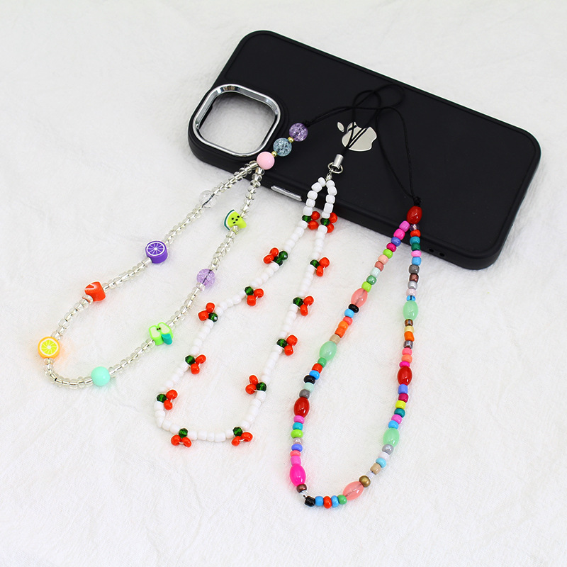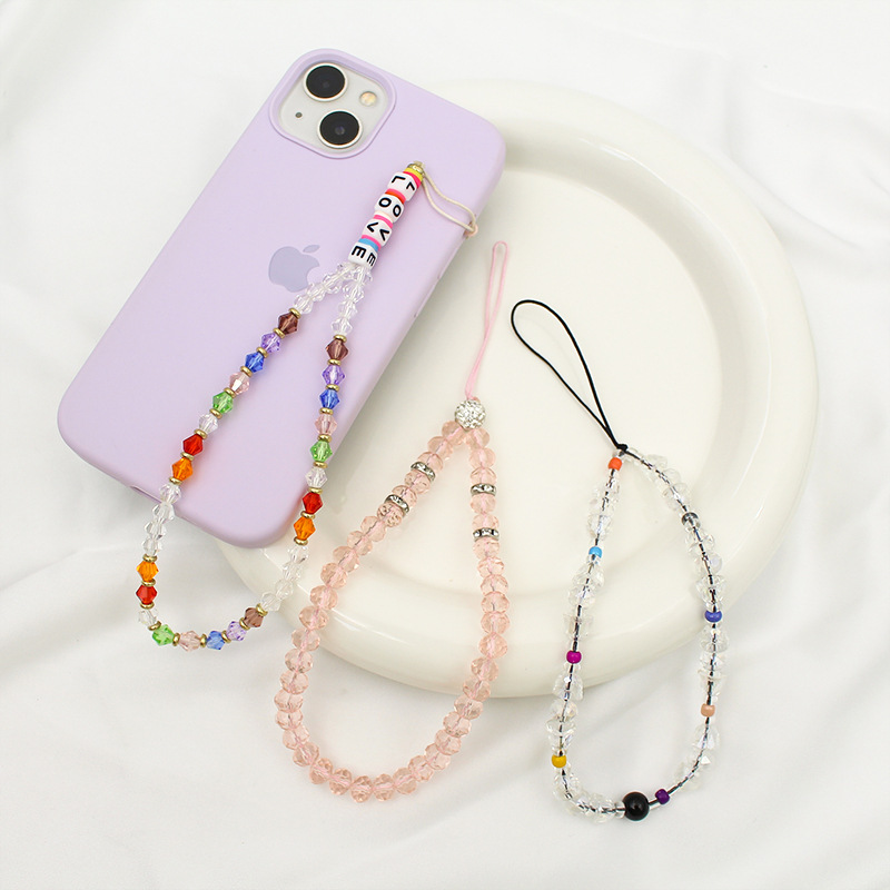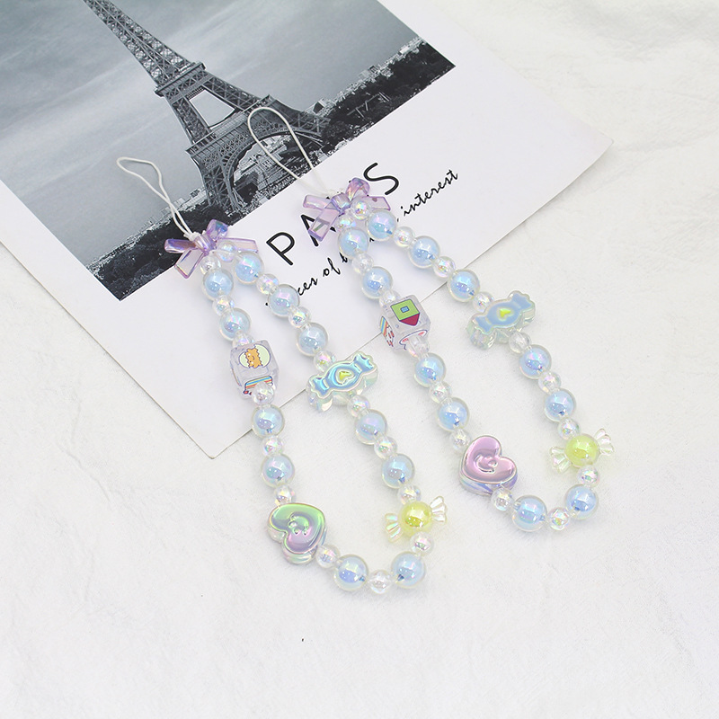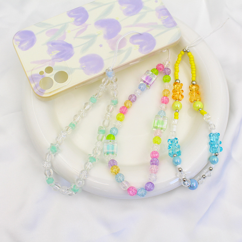 クロスボーダー新型携帯電話チェーンビーズins転倒防止携帯電話ストラップアクリル愛携帯電話ケースストラップ女性