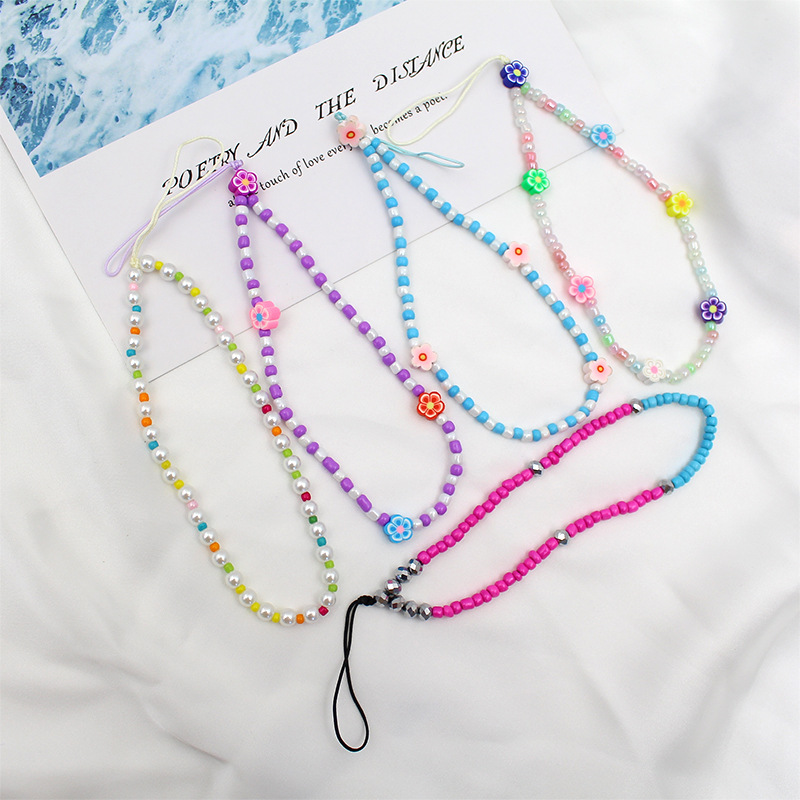 Ins日韓の新型の柔らかい陶の携帯電話のチェーンdiyの携帯電話のひもの数珠は花の多色の短い縄のファッションの流行をなくします。