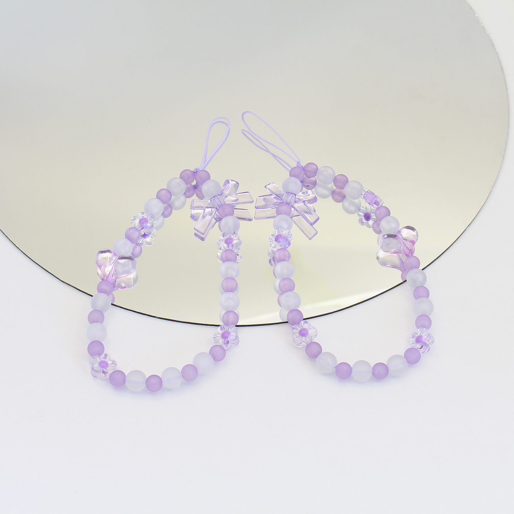 新しいビーズの携帯電話のチェーンのアクセサリーの女性の蝶結びの紫色の透明な愛のアイデアの携帯電話のケースは卸売りを飾ります。