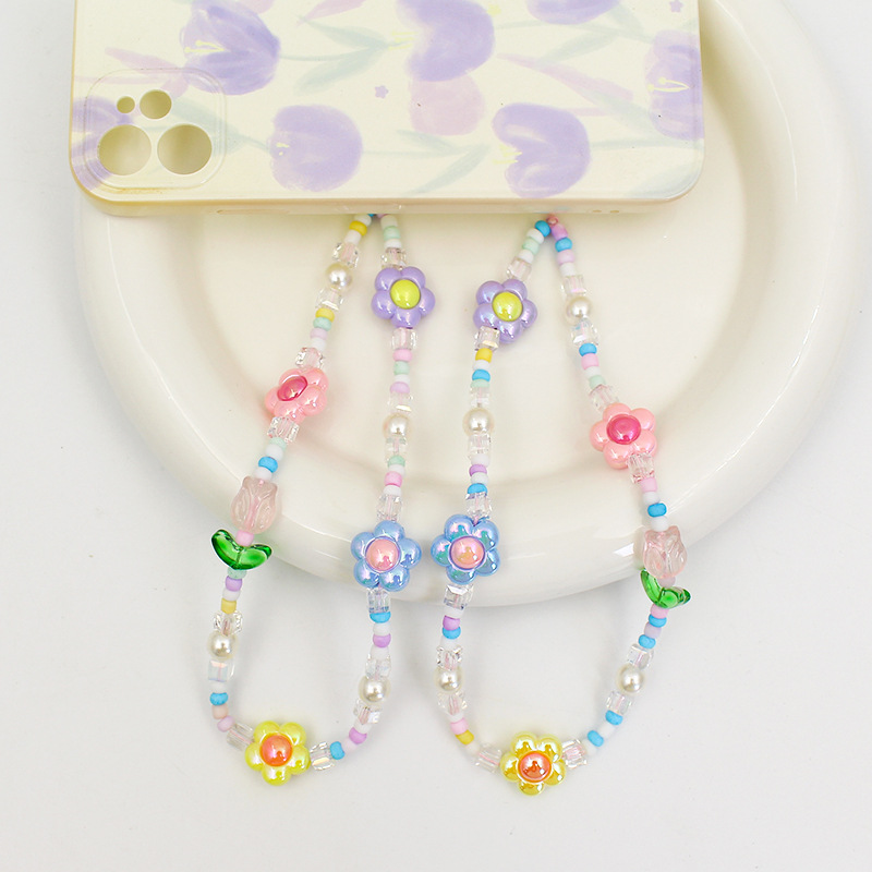 新品携帯ストラップビーズペンダントチューリップ花可愛い携帯ストラップ花ファッション女の子携帯ストラップ