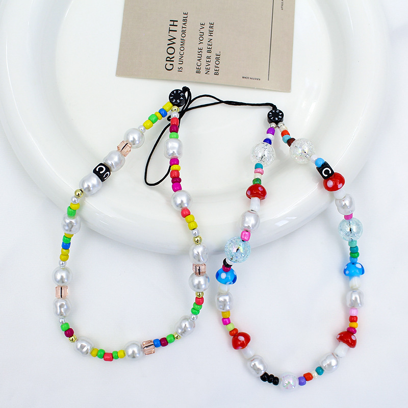 新品アクリル携帯ストラップパールストラップinsかわいい紛失防止ロープハンドビーズストラップ携帯チェーンビーズ