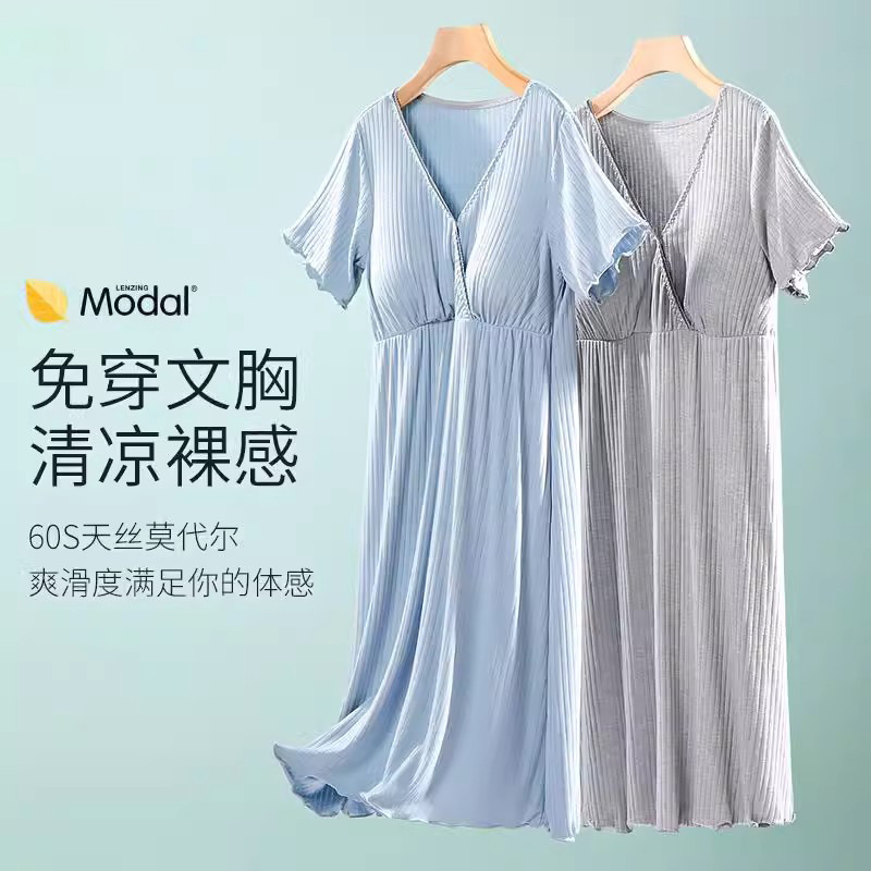 授乳用ナイトガウン、下着なし、産後授乳用ドレス、胸パッド付きマタニティベスト、夏用薄手スタイル