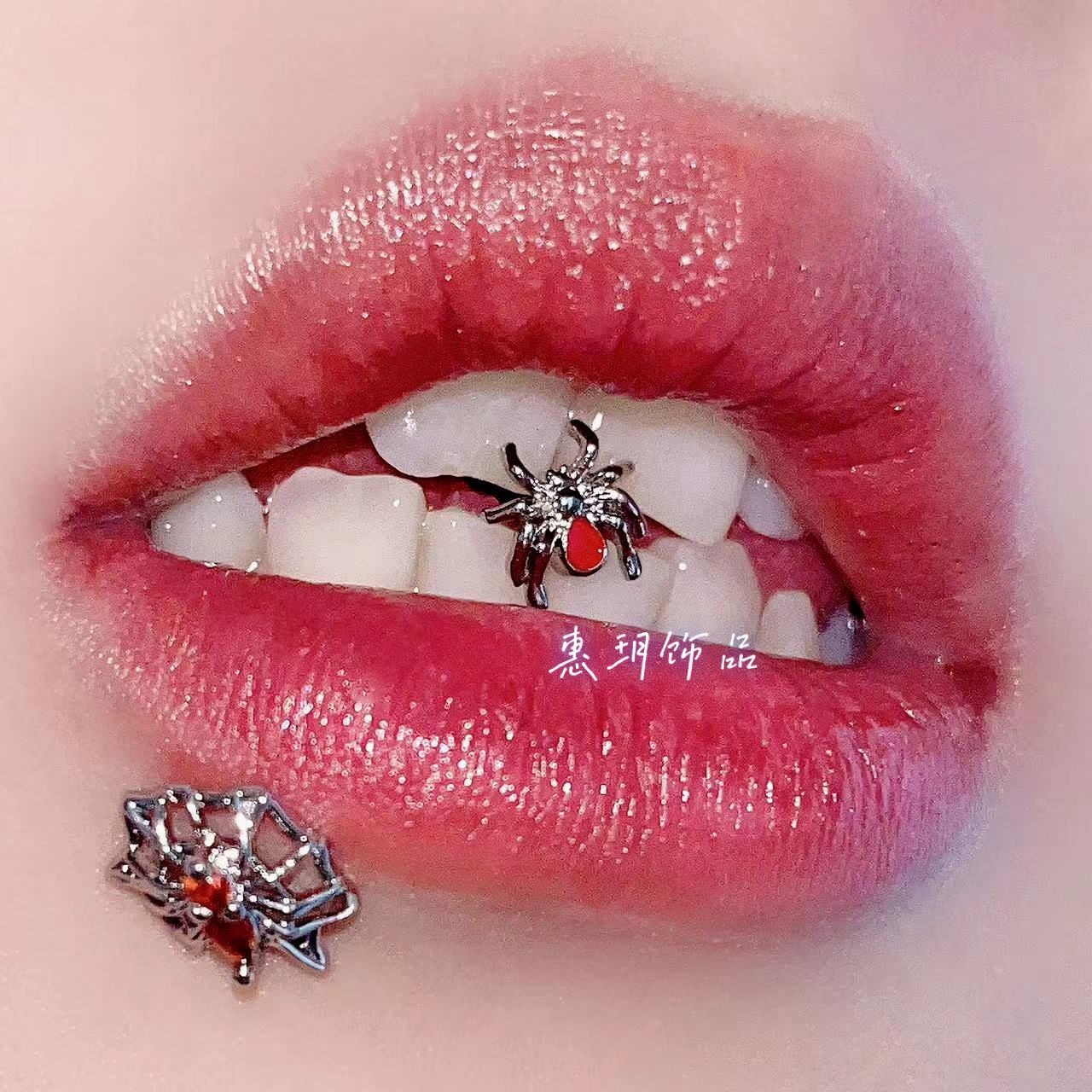 赤蜘蛛の舌釘316lチタン鋼の舌環ギャルパンク小衆欧米穿刺アクセサリークロスボーダー外歯舌釘