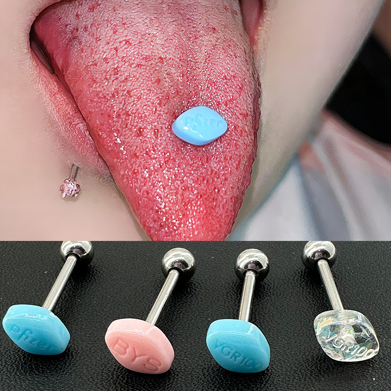 カラフルな錠剤、樹脂製の舌ネイル、パーソナライズされた特殊な形状の人体ピアス、義烏の国境を越えたジュエリー、人気の飲み物