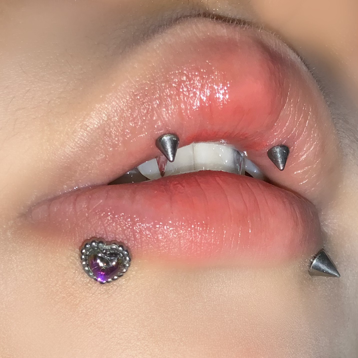 内歯愛桃心モカ七彩極光唇釘耳骨釘かわいいギャル小衆ins穿刺アクセサリー