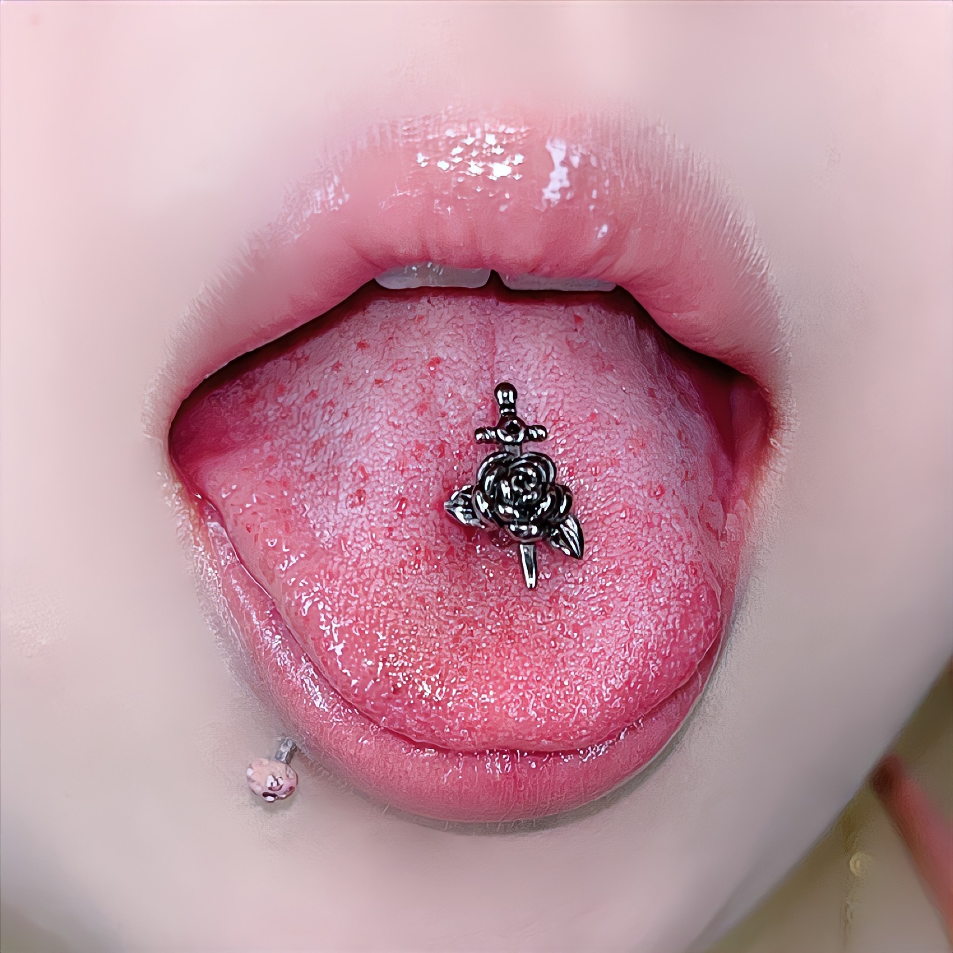 欧米のゴシック式のバラの剣の復古のチタン鋼の外の歯は糸の舌をねじって義烏の越境を越えて卸売りしてアクセサリーを穿刺します。
