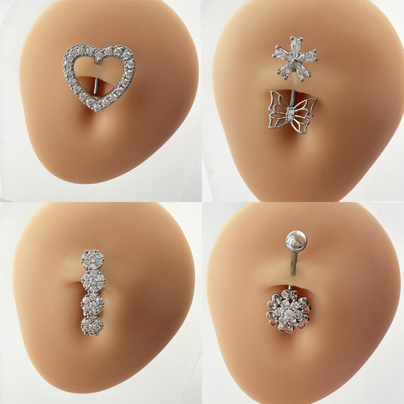 ダイヤモンドがちりばめられたジルコンの花、蝶、愛のへそネイル、へそリング、ピアスジュエリー、クロスボーダーパーソナライズ、ヨーロッパとアメリカのトレンド、セクシー