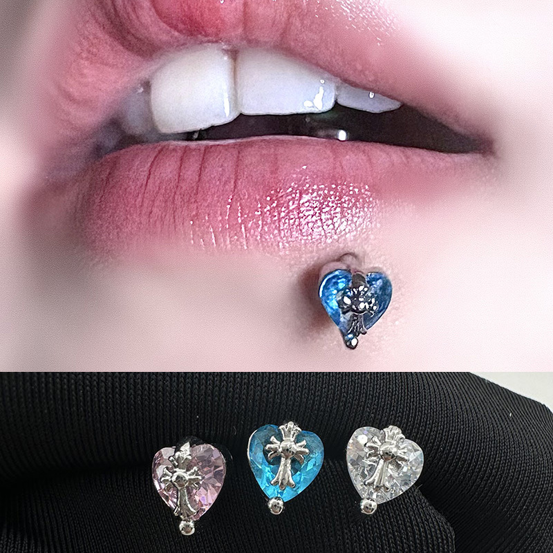 ラブクロウハートクロスダイヤモンド付きライト高級ハイエンドチタン鋼リップネイルクロスボーダーピアス義烏アクセサリージュエリー