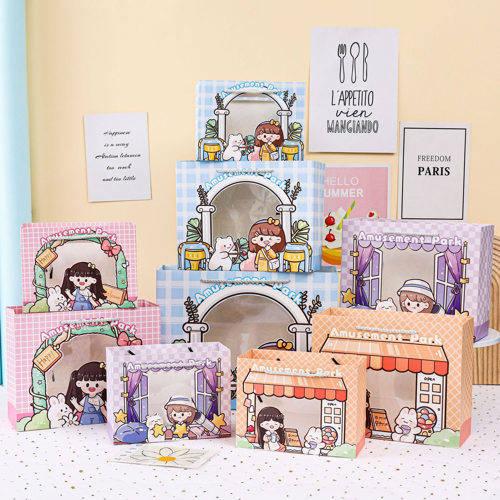 新しいアニメ紙袋遊園地模様のギフトバッグは窓を開けてレジ袋を透かして高顔値のお土産卸売りをします。