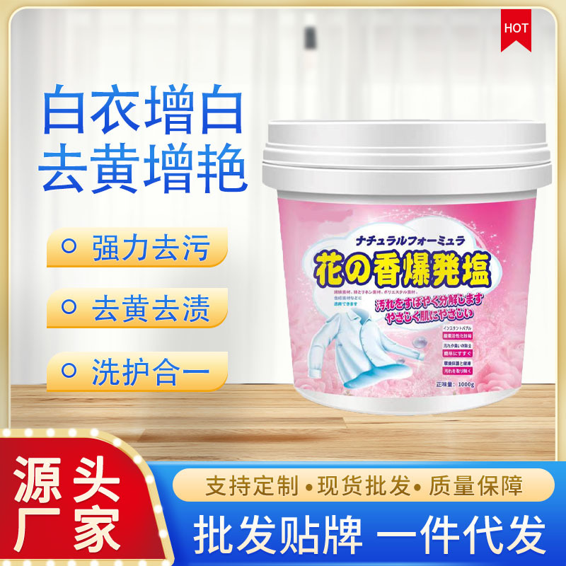 花の香りが爆発した塩は汚れを落として黄色に塗った白い服の色の漂白粉の赤ちゃんの香りの泡の粉を残して代行します。
