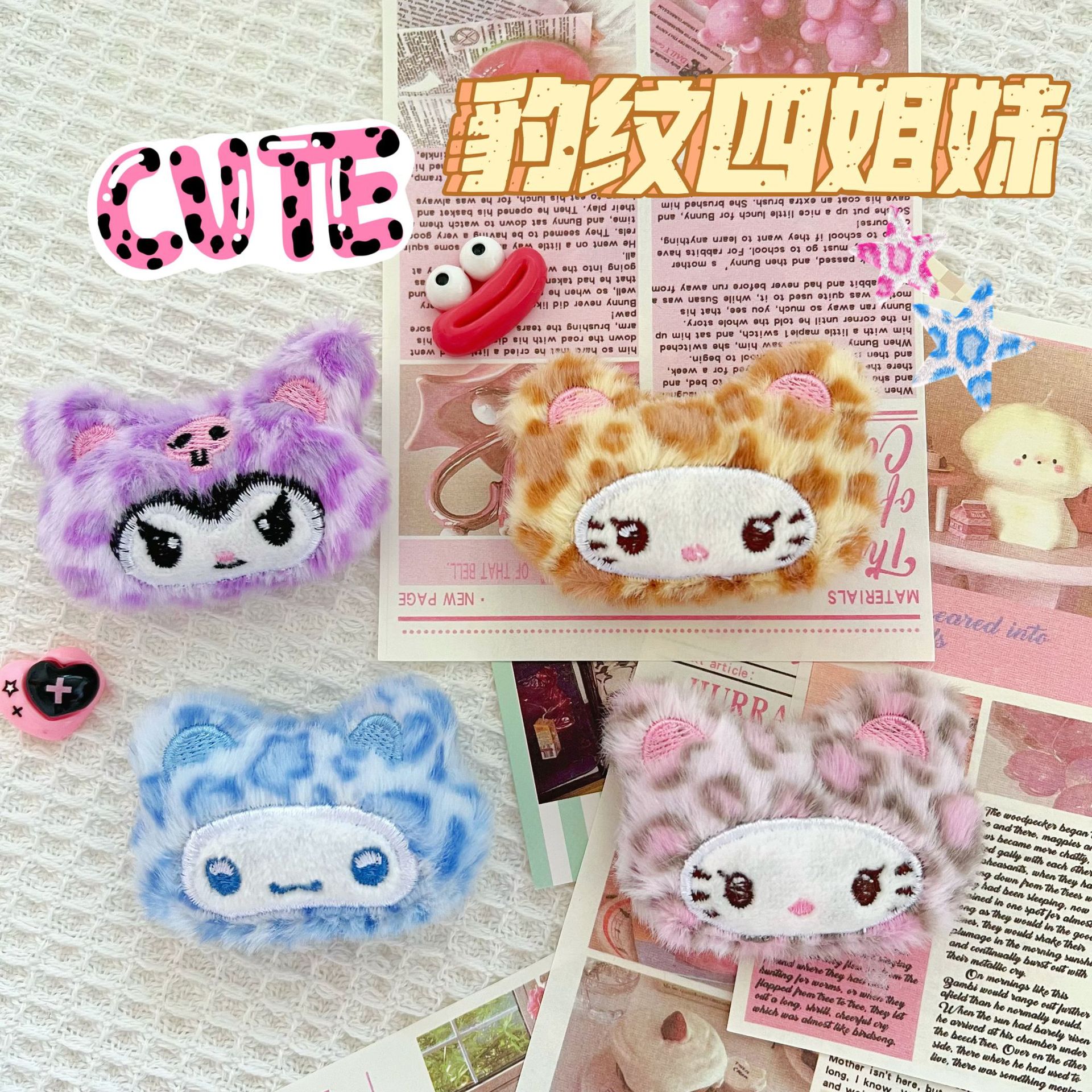 漫画のぬいぐるみかわいいヒョウ柄の姉妹の子供の髪のひもの人形のクリップの部品の服装の靴の帽子の補助材料