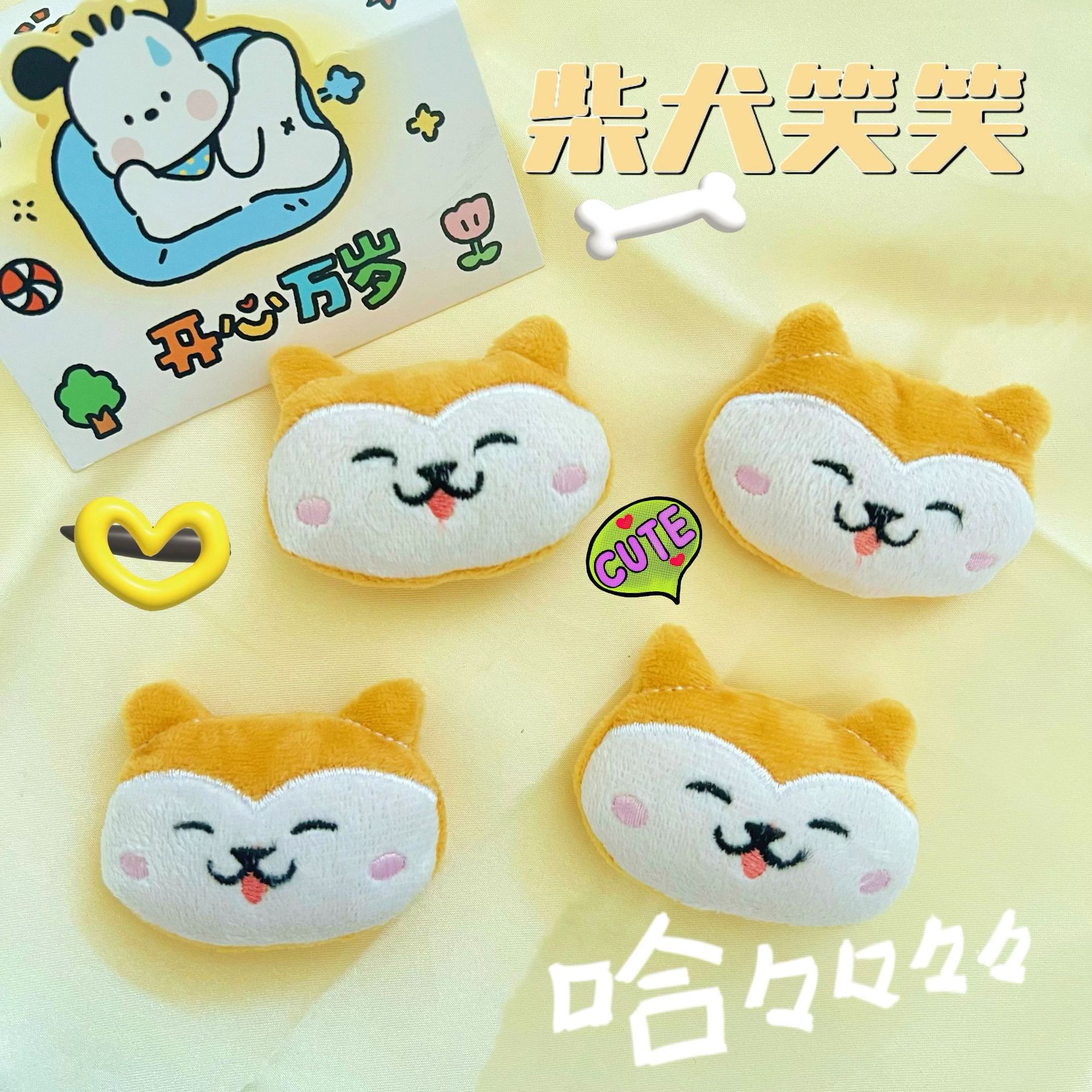 かわいい漫画柴犬子犬人形かわいいキッズ子供秋靴ソックス服アクセサリー少女ハートヘアクリップ
