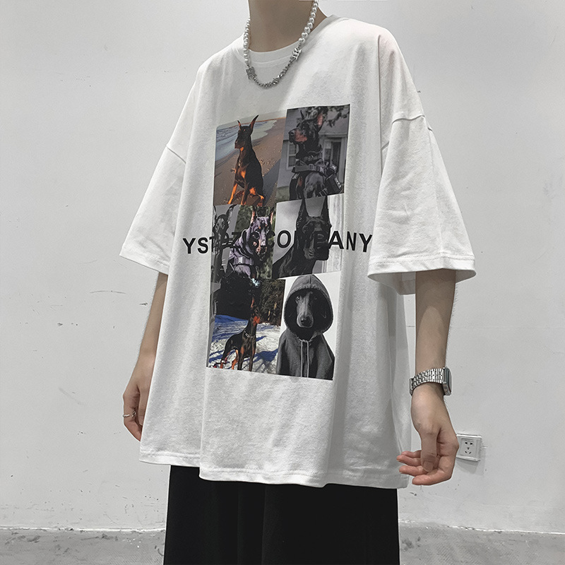 香港風tシャツ男性半袖ファッションブランド男性上着夏ファッションゆるい服プリントins半袖tシャツ