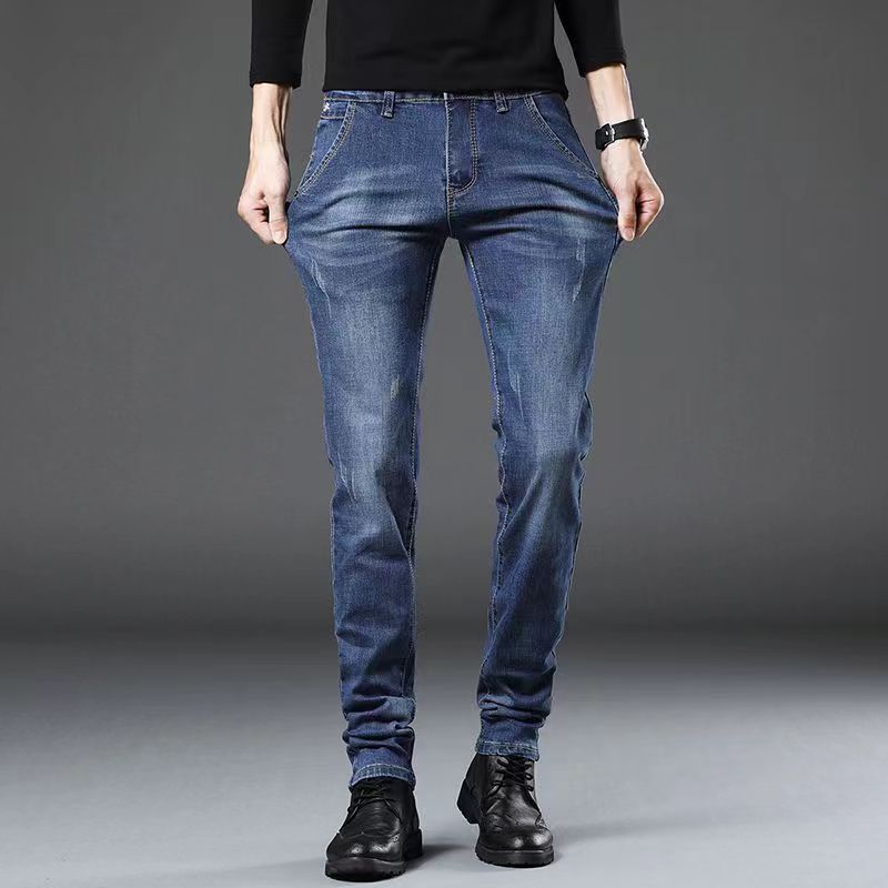 ジーパンの男性の潮のブランドの潮流の2025新型の深い青いネットの赤い潮流の韓国版の黒色の弾力性の修身の小さい足のズボン