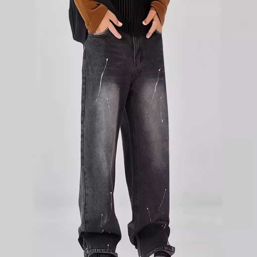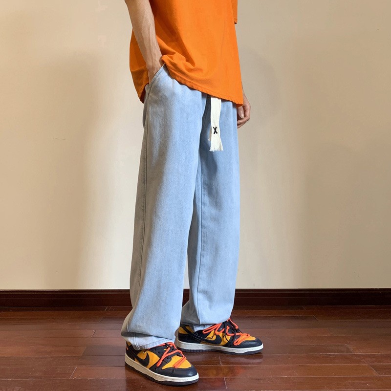 ストレートジーンズ復古男春秋薄手ゆるいカジュアルパンツが腰を緩めてひもを引く男ズボンのデザイン感が小さい