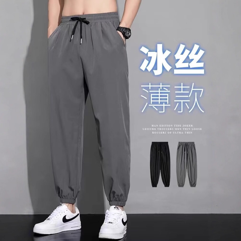 薄いカジュアルなズボンの夏の男性のゆったりしたスポーツのズボンの垂れ下がった感じの氷の糸の通気性の束の足の9分のズボンの男