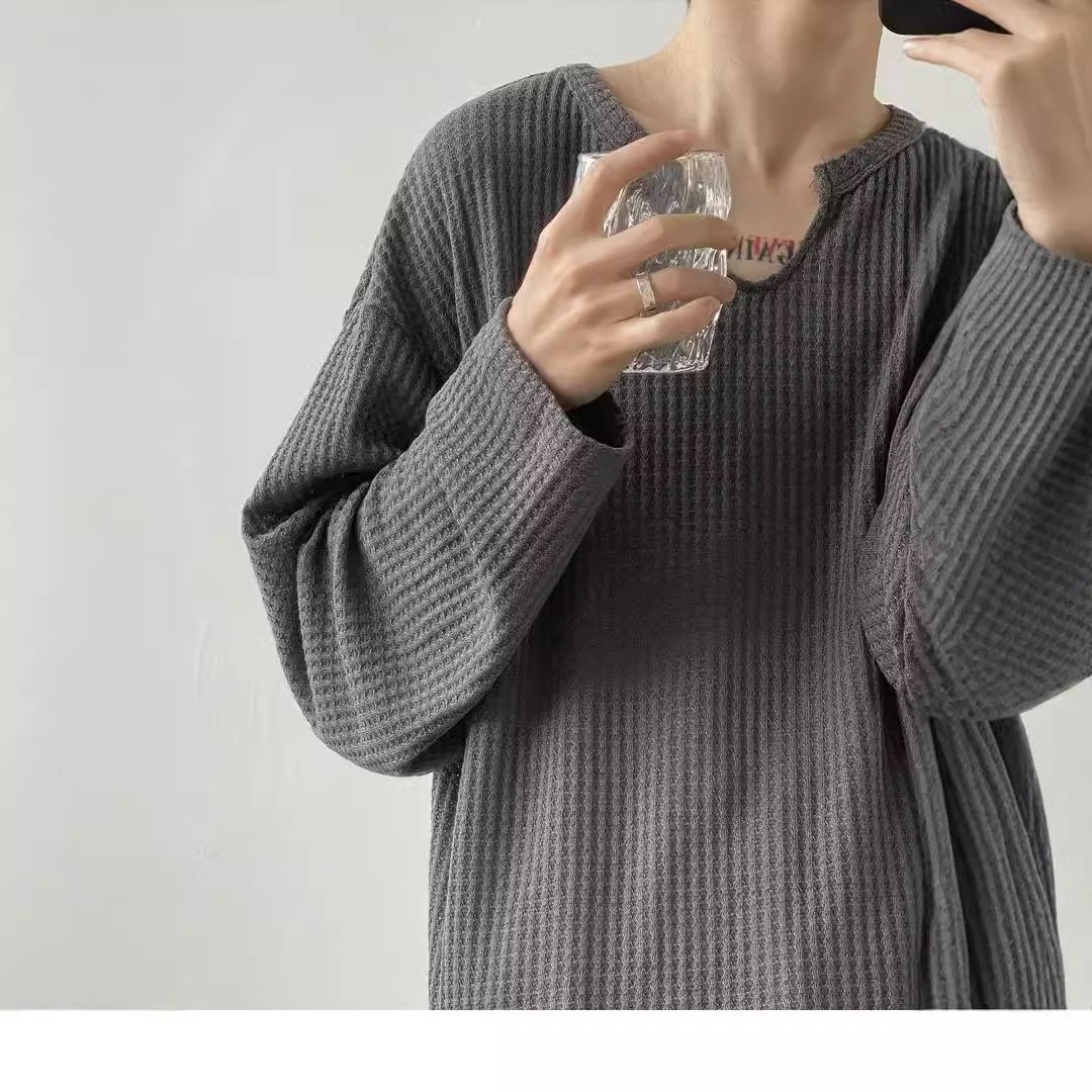 アメリカの青春流行tシャツ男坑条の質感がゆったりしていて、長袖のデザイン感があります。
