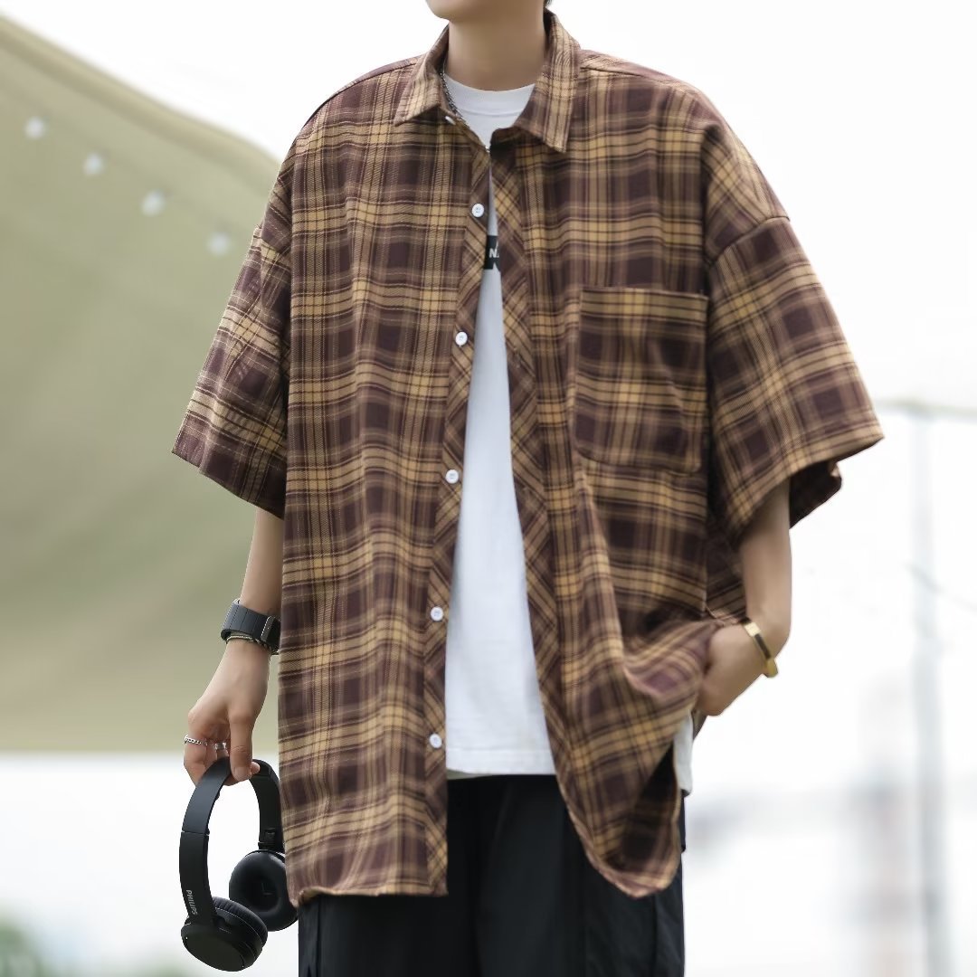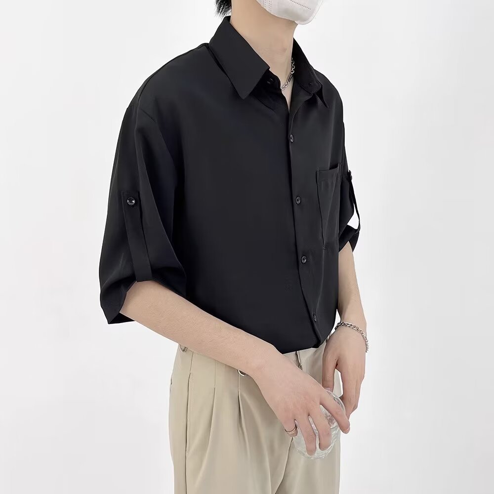七分袖シャツ男半袖韓国版トレンドinsシャツ軽熟風痞帅夏百合感上着
