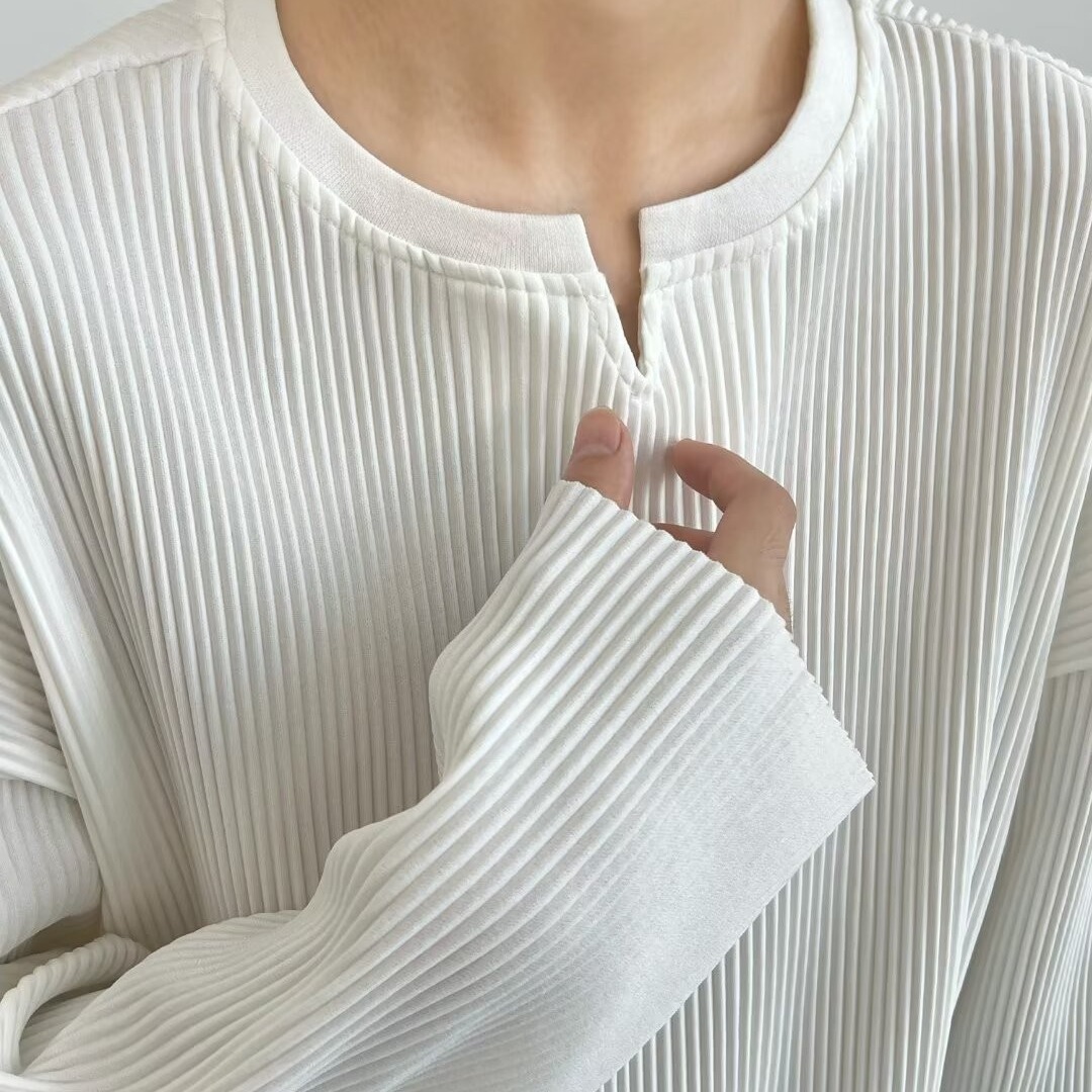 メンズ長袖tシャツ男2024新作国潮牌白ゆるいボトムシャツ純色ファッションデザイン感服