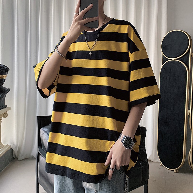 ストライプメンズ半袖tシャツ2024夏新作ファッション日本服tシャツ純綿半袖メンズ