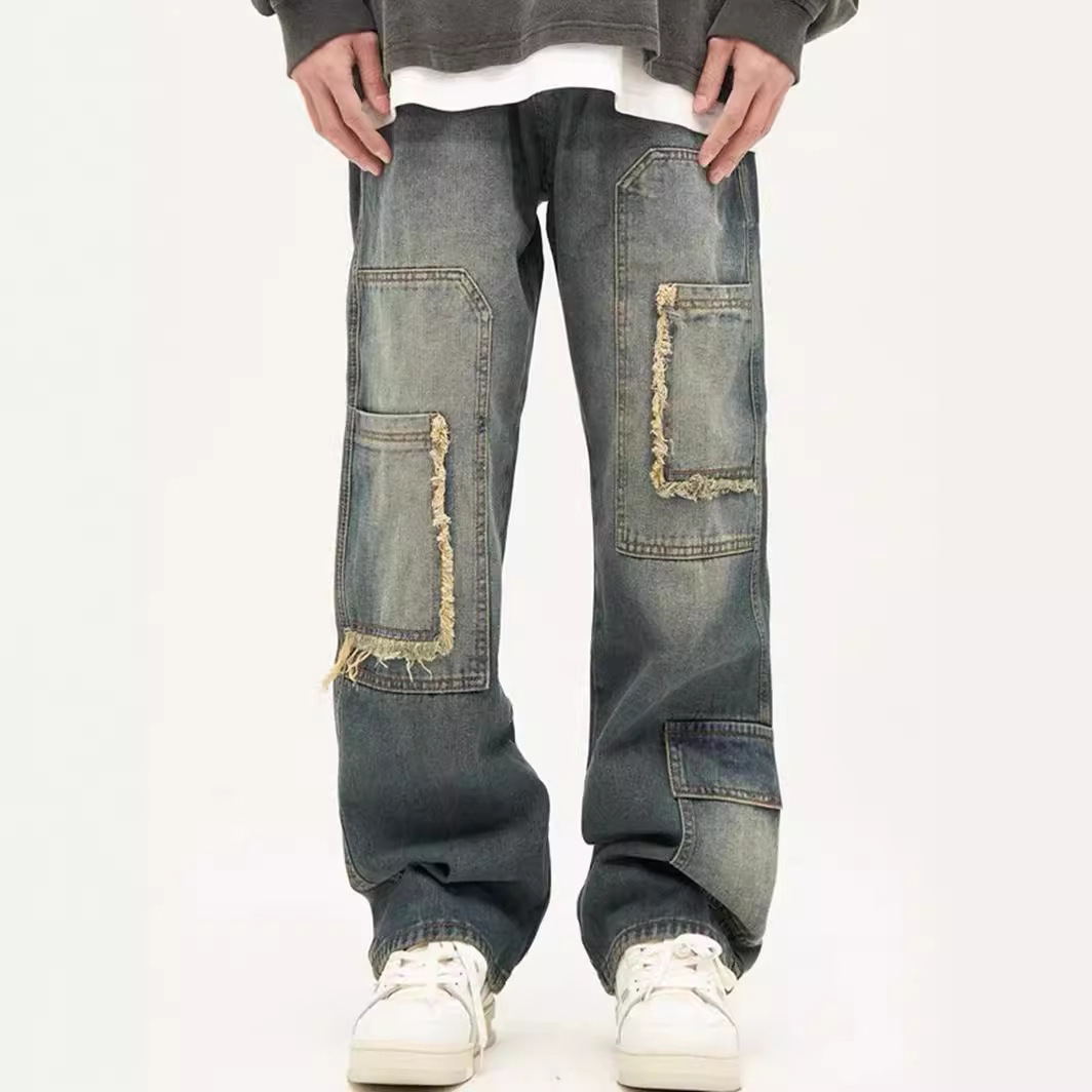 ストレートゆるいジーンズ男性アメリカ式高街復古水洗いバリの小さなデザイン感ファッションブランドのカジュアルパンツ