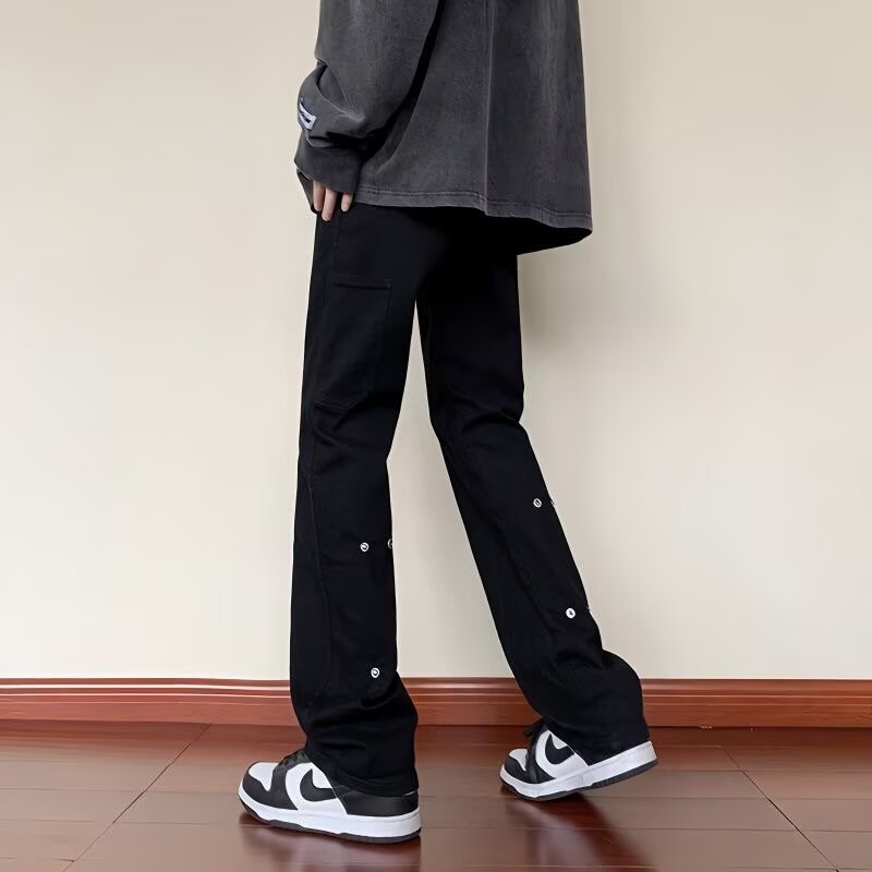 男性式ジーパン2024春秋微ラッパファスナー男性アメリカ式修身ズボン潮牌高街レトロ小足カジュアル