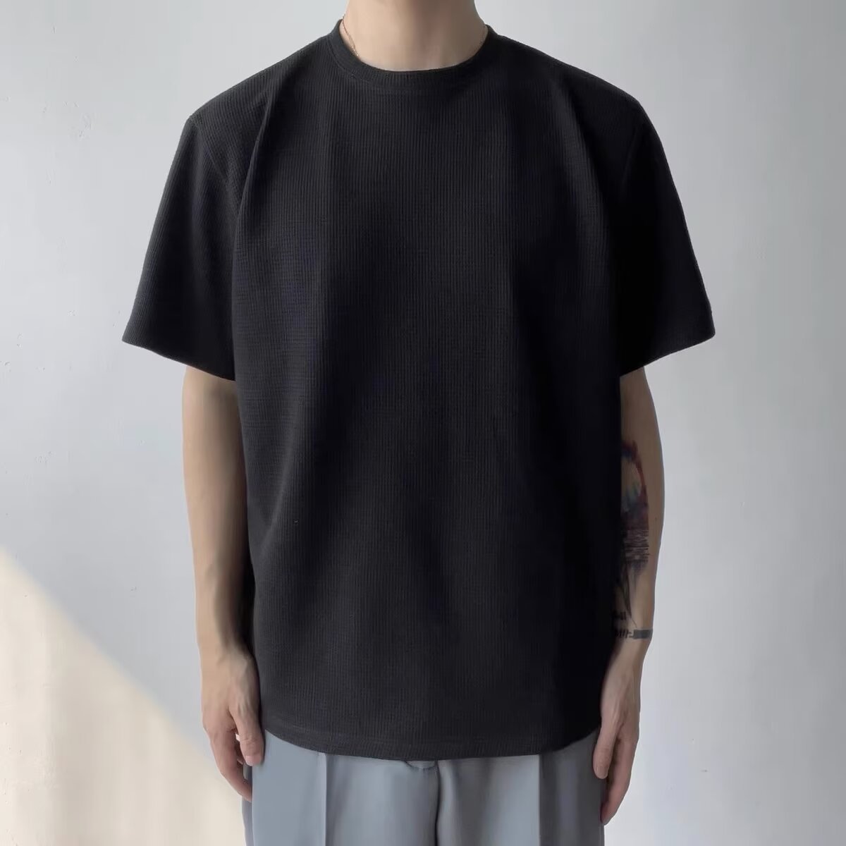 半袖の新型tシャツ男性夏韓国版トレンドシンプル半袖上着香港風ゆるいカジュアルシャツ