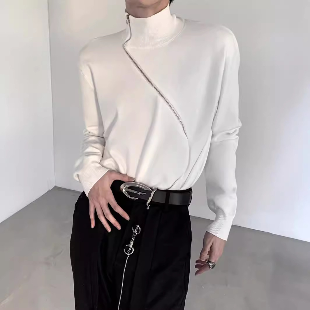 ジッパー付きの男性秋冬2024年春秋韓国版の新型丸首のゆったりした上着のシックな香港風の流れ