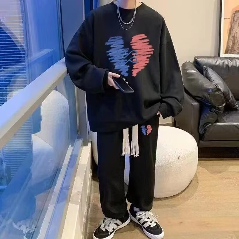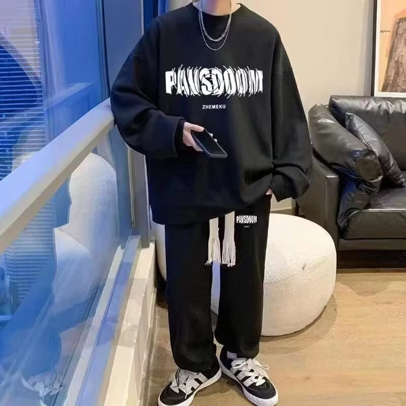 男性のスポーツウェアは春と秋のカジュアルなファッションブランドのゆるいガードルのズボンの男性の女性のセットと格好いい服を組み合わせます。
