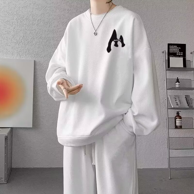 スポーツスーツの衛のズボンの男性の秋の新型の流行のゆったりしている大きいサイズのファッションのレジャーのワッフルの2つのセット