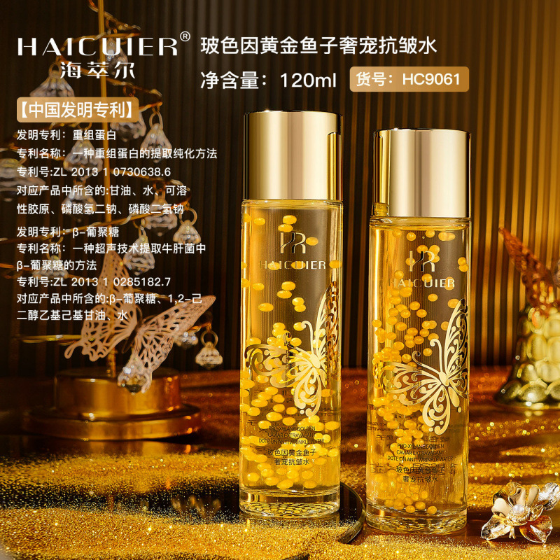 海爾のガラスの色は黄金のキャビアの贅沢でしわの水に抵抗して保湿します。