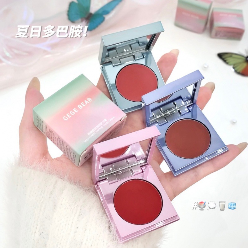 Gegebear頬の光が美しい雰囲気のチークが低いです。