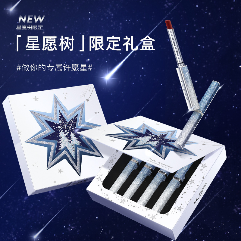 HLOFF Han Luofei スターウィッシュツリー リップスティックセット 保湿と色褪せしにくい ウォーターミラーリップグレーズ マットマットリップ