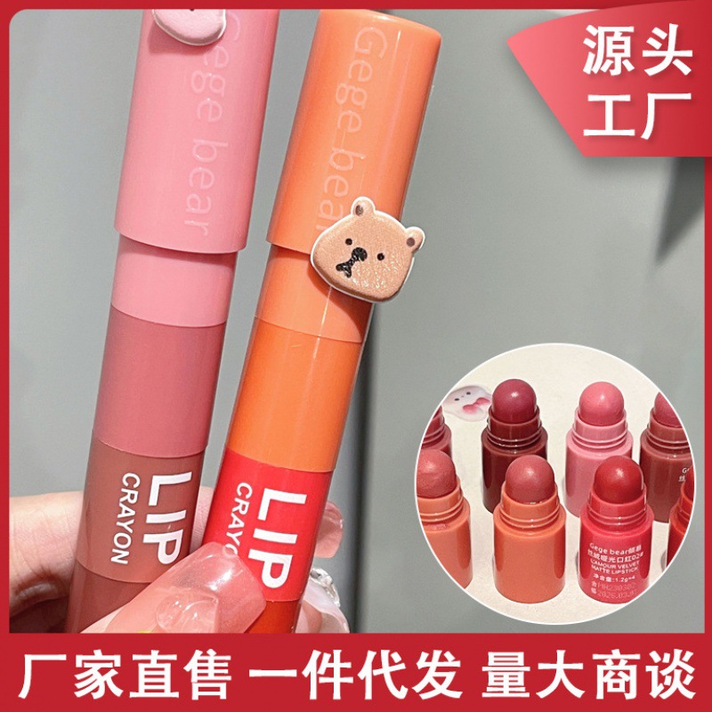 Gege bearゴゴ熊はベルベットのつや消し口紅の霧の顔を慕っています。