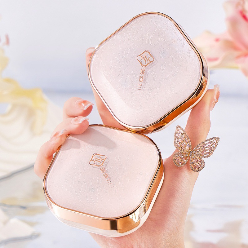新品のソティラン陶磁器の白い軽い霧の柔らかい焦点の空気の2層の乾湿の粉の餅は油をコントロールして化粧を決めます。