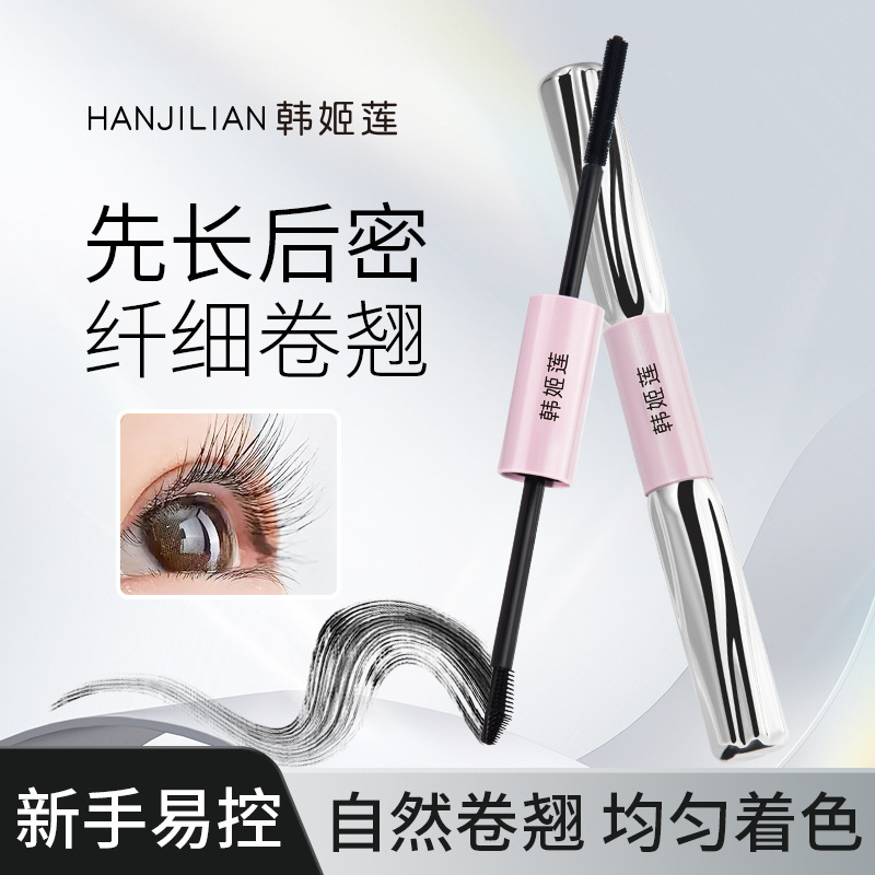 Han Jilian バーベル ダブルヘッド マスカラ カーリング、スリム、長持ち、速乾性、防水、にじまないマスカラ