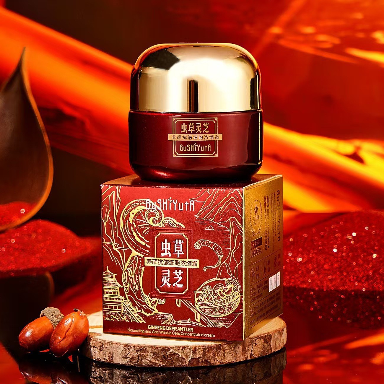 GuSHiYuTaストーリーと彼女の虫草霊芝養顔抗しわ細胞濃縮クリーム