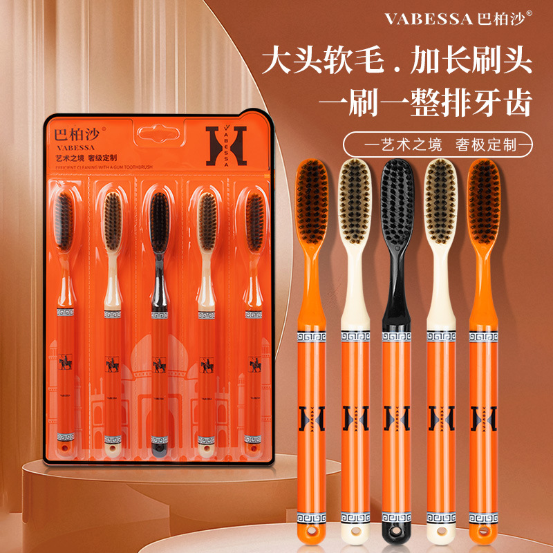 [5本パック] オレンジライト高級ソフト毛歯ブラシ家庭用歯肉保護歯ブラシ家庭用ロングヘッド歯ブラシ