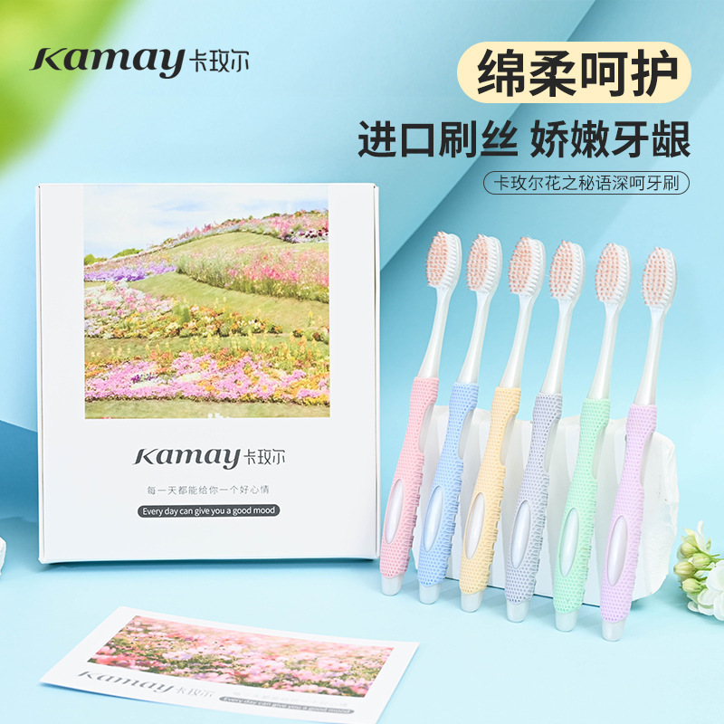 【6本のギフトボックス】カバラの花の言葉の柔らかい毛の歯ブラシの滑り止めの取っ手の細い糸の成人の家庭用メーカーは直接販売します。