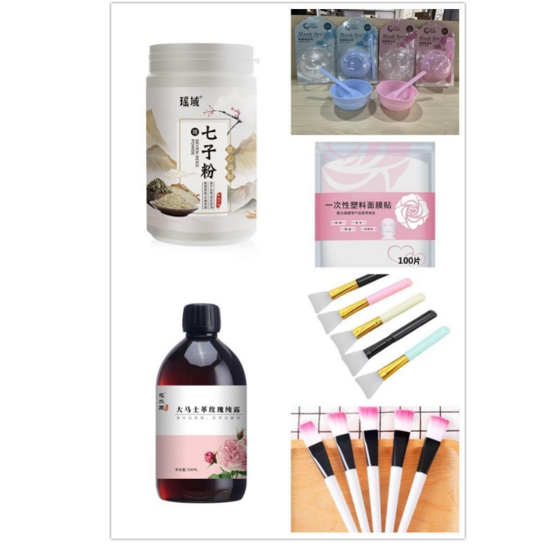 顔の中のオウギの霜 + シルクの幕のアロエのゴム
