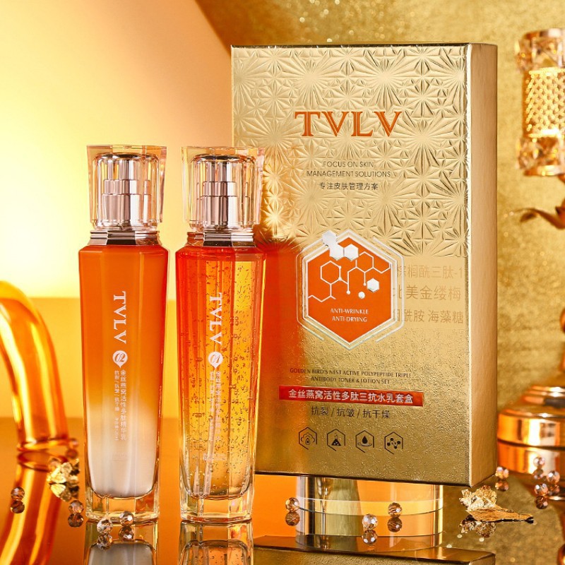 TVLV ゴールデンシルクツバメの巣活性ポリペプチド三抗水乳液セットスキンケアさわやか、保湿、美白、抗シワ水乳液セット