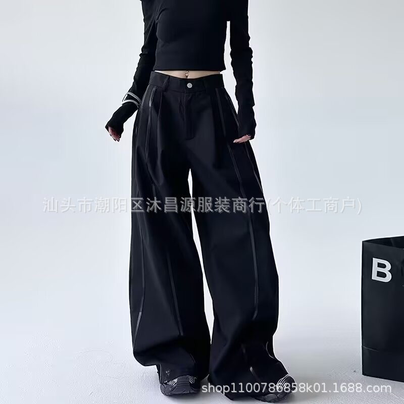 ファッショナブルでカジュアルな初春のニッチレザーデザインのカジュアルスーツパンツ、男性と女性用、ストレートハイストリートワイドレッグフロアレングスパンツ
