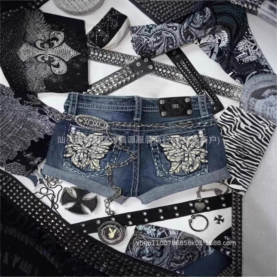 アメリカンレトロ風ロールアップローウエストデニムショートパンツ レディース 2024夏新作 万能ストレッチタイトストレートホットパンツ